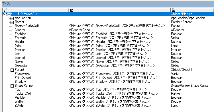 _NewEnum に限らず、 Name や Index など、Picture のほぼすべてのプロパティを読めない状態です。