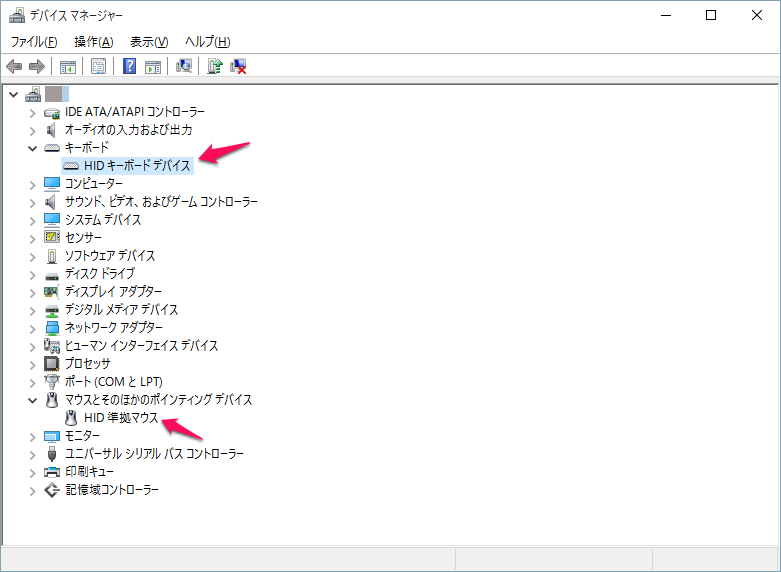 HID 準拠マウスも同様に設定します。無線マウス(無線キーボード)は使ってないよという場合もキーボード・マウス両方ともチェックを外してください。