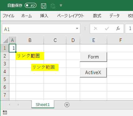 検証のため、簡単にリンクされた図を配置したシートと、100回ひたすらA1に1を書き込むプログラムを書きます。
