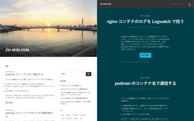 今までは Twenty Seventeen を使っていました。画像が大きく出るデザインが気に入っていたのですが、もう3年もたったので最新の Twenty Twenty に変更しました。前回は淡色というか白背景だったので、今回は濃色に変更です。